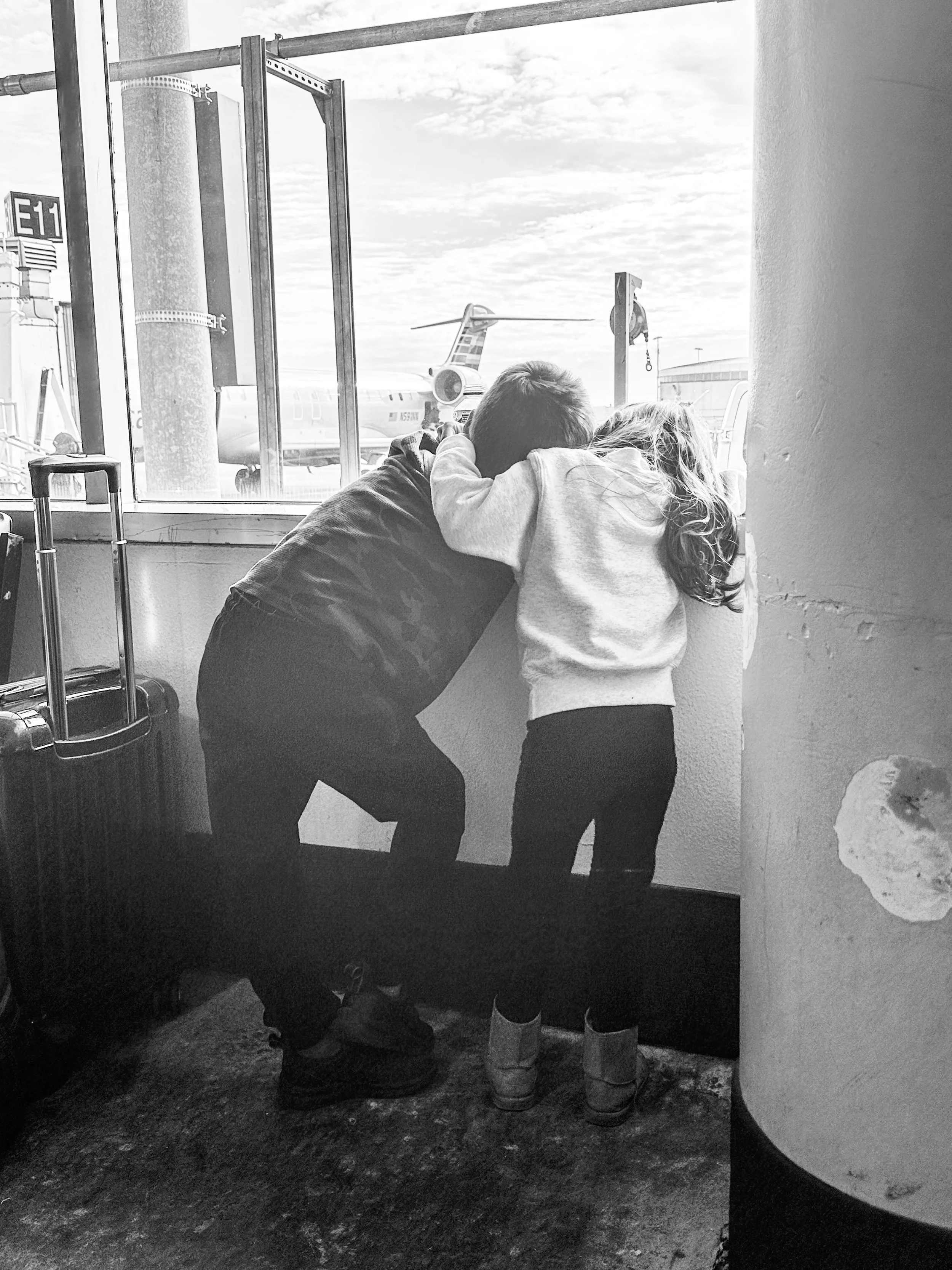 My two kids waiting to board our flight to Canada.