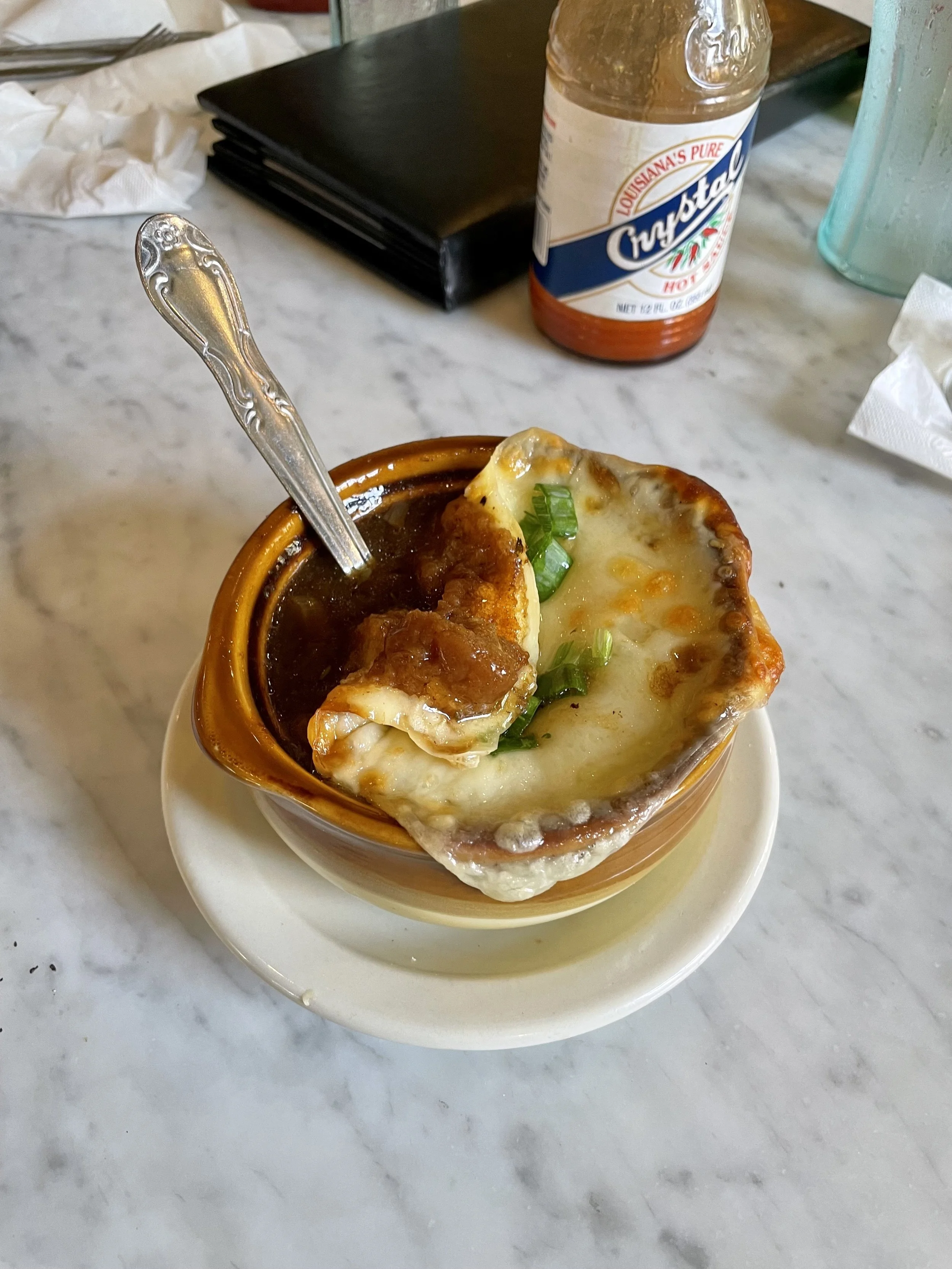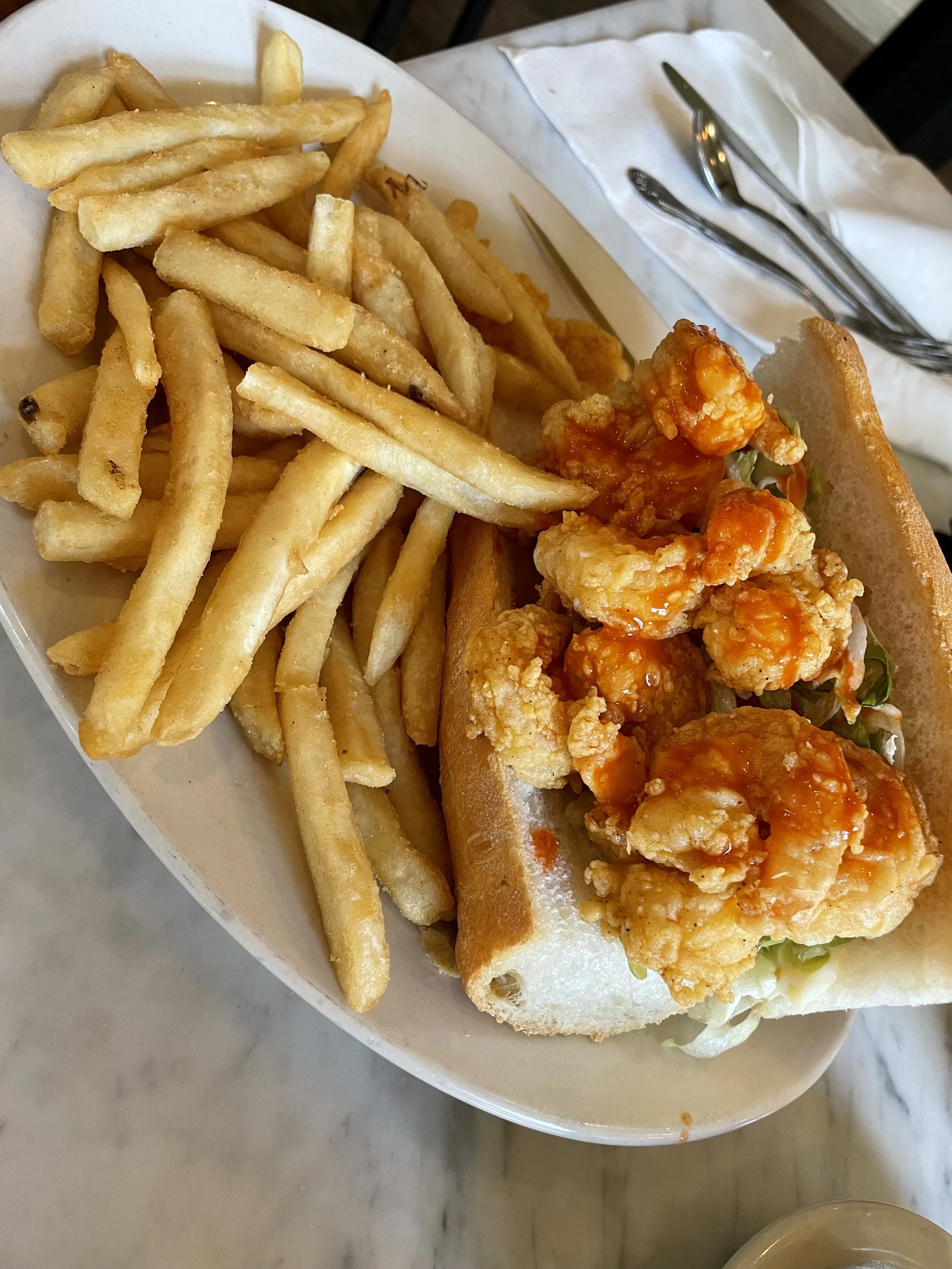 • For brunch, head over to Stanley’s, one of my favorite spots in New Orleans. My go-to is the Stanley Classic, while my husband loves the Omelet Sandwich. We’ve also tried their pancakes, Eggs Benedict Po-Boy, Reuben, and cheeseburger, all of which are great. We always grab a vanilla latte to-go!